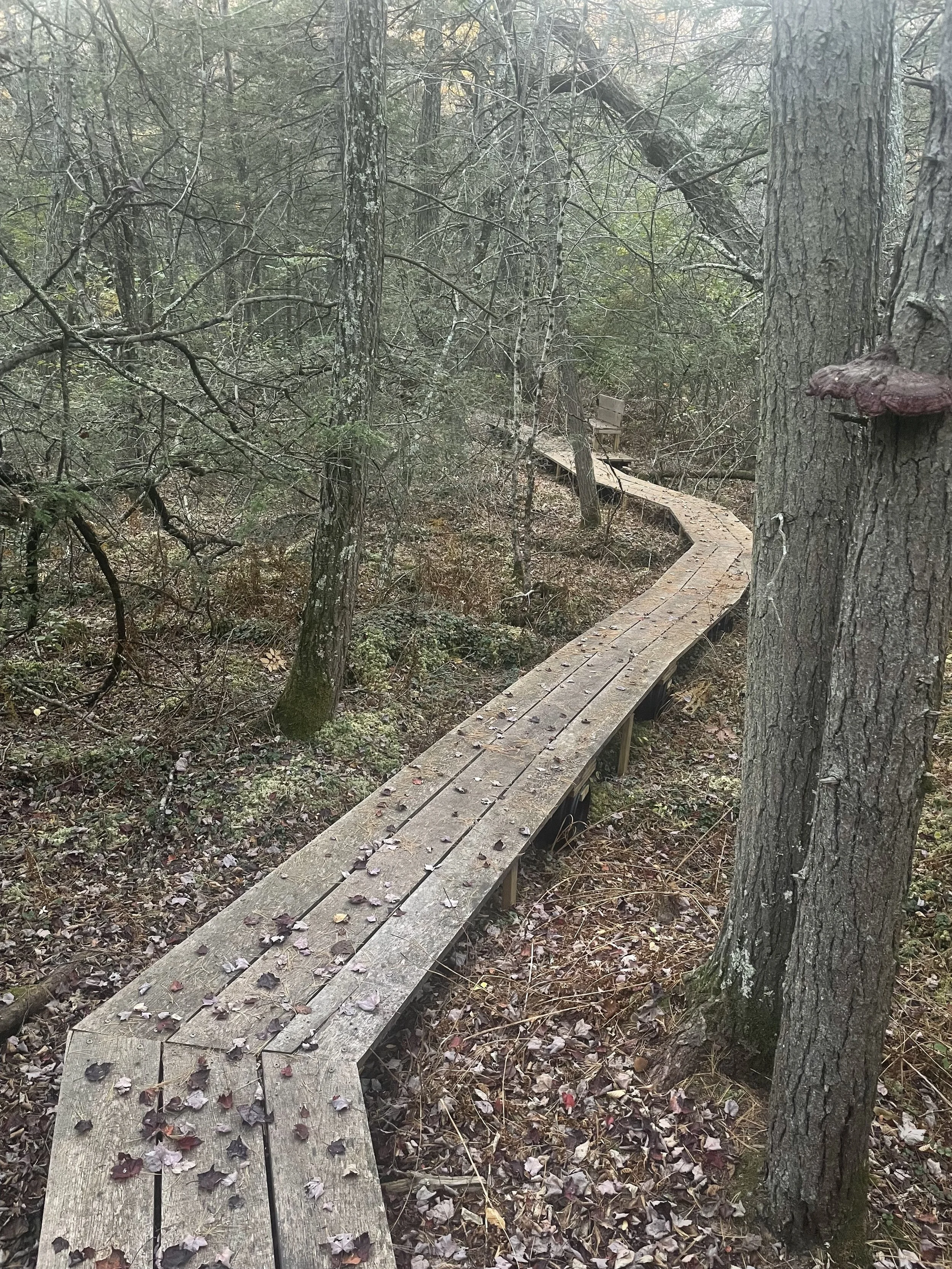 The trail loop and Bog Walk spur are about three-quarters of a mile long.